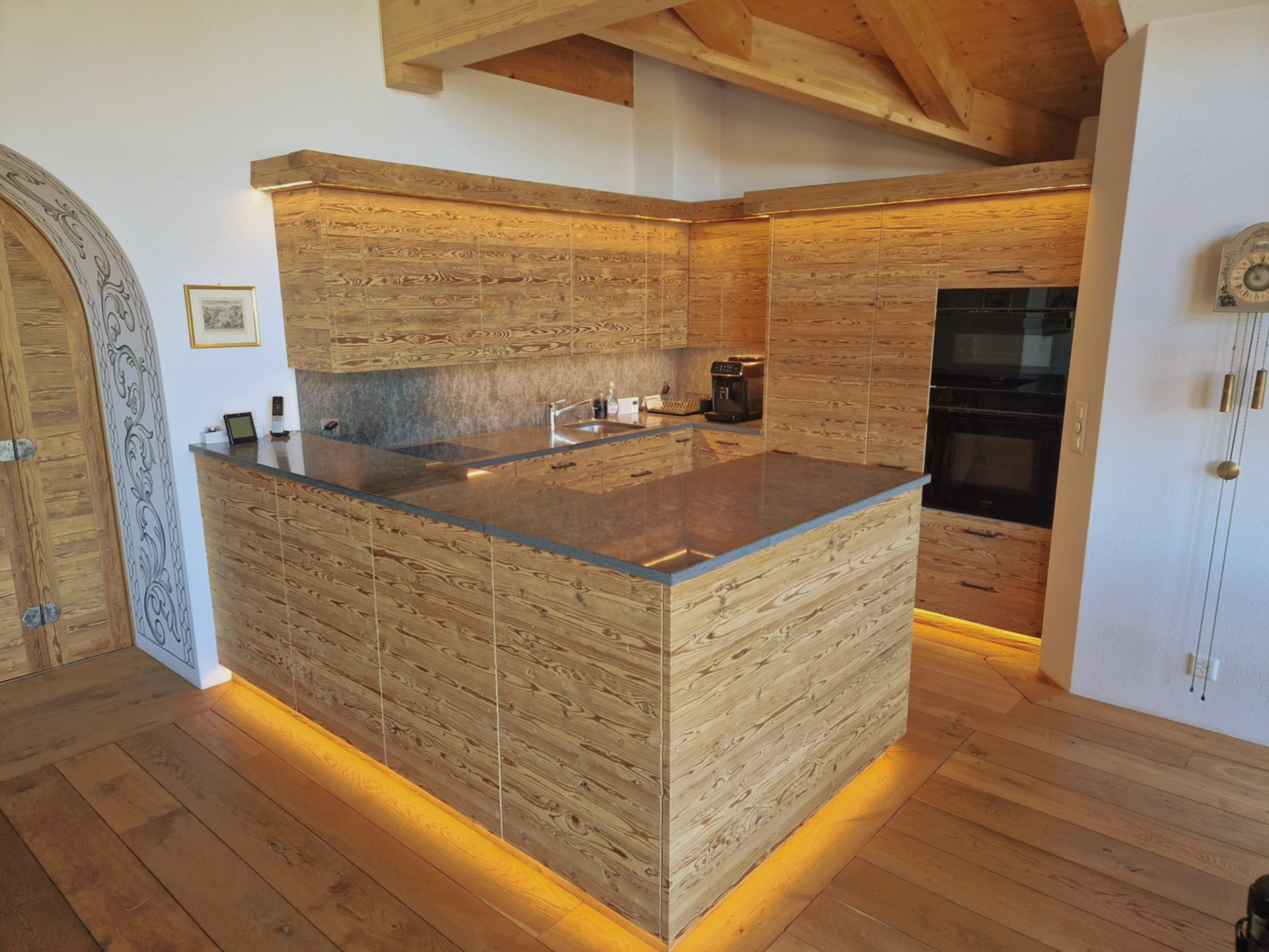 Erleben Sie unsere Handwerkskunst in der Anwendung: Von detailreichen Innenausbauten über einzigartige Küchenlösungen bis hin zu charaktervollen Fassaden zeigen unsere Referenzprojekte, wie vielseitig und langlebig echte Schreinerarbeiten sein können. Ob Sauna, Chalet oder Denkmalobjekt – jedes Beispiel auf den folgenden Seiten steht für unsere Liebe zum Holz, zum Detail und zur traditionsbewussten Umsetzung individueller Kundenwünsche.
